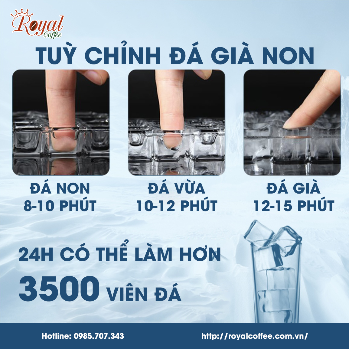 Royal Coffee đã, đang sử dụng và giới thiệu cho các Cửa Hàng – Chi Nhánh – Đại Lý của chúng tôi trên Toàn Quốc. Vì vậy, Royal Coffee xin Cam kết Máy làm đá viên Hiroki Model: LB – 400TA với sản lượng 250 Kg/ngày, đảm bảo nguồn đá siêu sạch, an toàn VSTP và phù hợp cho quán cafe, trà sữa, nhà hàng thức ăn nhanh… .